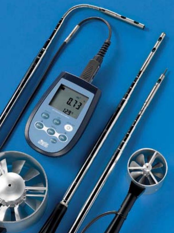 Misura la velocità, la portata e la temperatura dell’aria nei condotti o bocchette con sonde a filo caldo o ventolina; la sola temperatura con sonde ad immersione, penetrazione, contatto o aria; il sensore di temperatura può essere Pt100 o Pt1000. Le sonde provviste di modulo SICRAM hanno memorizzati al loro interno i dati di calibrazione di fabbrica. La funzione Max, Min e Avg calcola i valori massimo, minimo e medio. Altre funzioni sono: la misura relativa REL, la funzione HOLD e lo spegnimento automatico escludibile. Lo strumento ha grado di protezione IP67.