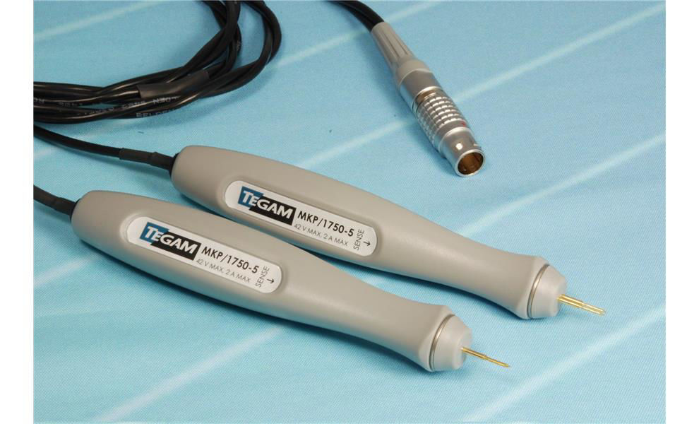 Queste sonde sono eccellenti per effettuare misure di resistenza superficiale a quattro fili su film e altre superfici metalliche piane. Le sonde sono marcate per indicare i pin “sense”, garantendo una misura senza errori operatore. Ogni sonda ha due puntali sostituibili a molla (spring-loaded) che possono essere facilmente rimossi e sostituiti. È disponibile una varietà di puntali. I cavi di prova sono lunghi 5 piedi ciascuno e terminano con un connettore Lemo. La distanza tra i pin (centro-centro) è 0,11 in (0,28 cm). La lunghezza cavo è 5 ft. Opzioni pin disponibili: P/N MKP-B, MKP-F, MKP-H, MKP-J, MKP-LM (4 pin). (I pin non sono inclusi nel set sonde e devono essere ordinati separatamente.)