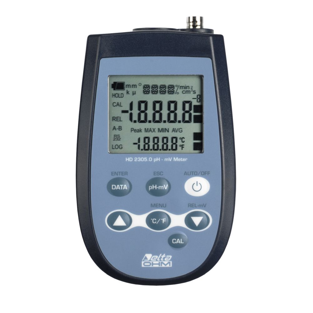 L’HD2305.0 è uno strumento portatile con un grande display LCD. Misura il pH ed il potenziale di ossido-riduzione (ORP) in mV. Misura la temperatura con sonde con sensore Pt100 o Pt1000 ad immersione, penetrazione, contatto o aria.