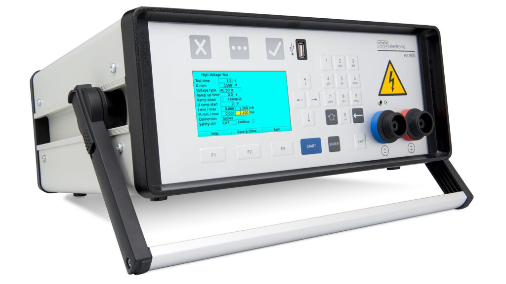 L’HA 1800M di SPS electronic è un hipot tester che combina in un unico dispositivo le prove di alta tensione (AC e DC) e la misura d’isolamento. È ideale per test di sicurezza rapidi, economici e pratici, in conformità agli standard nazionali e internazionali (IEC, EN, UL, VDE, ecc.).