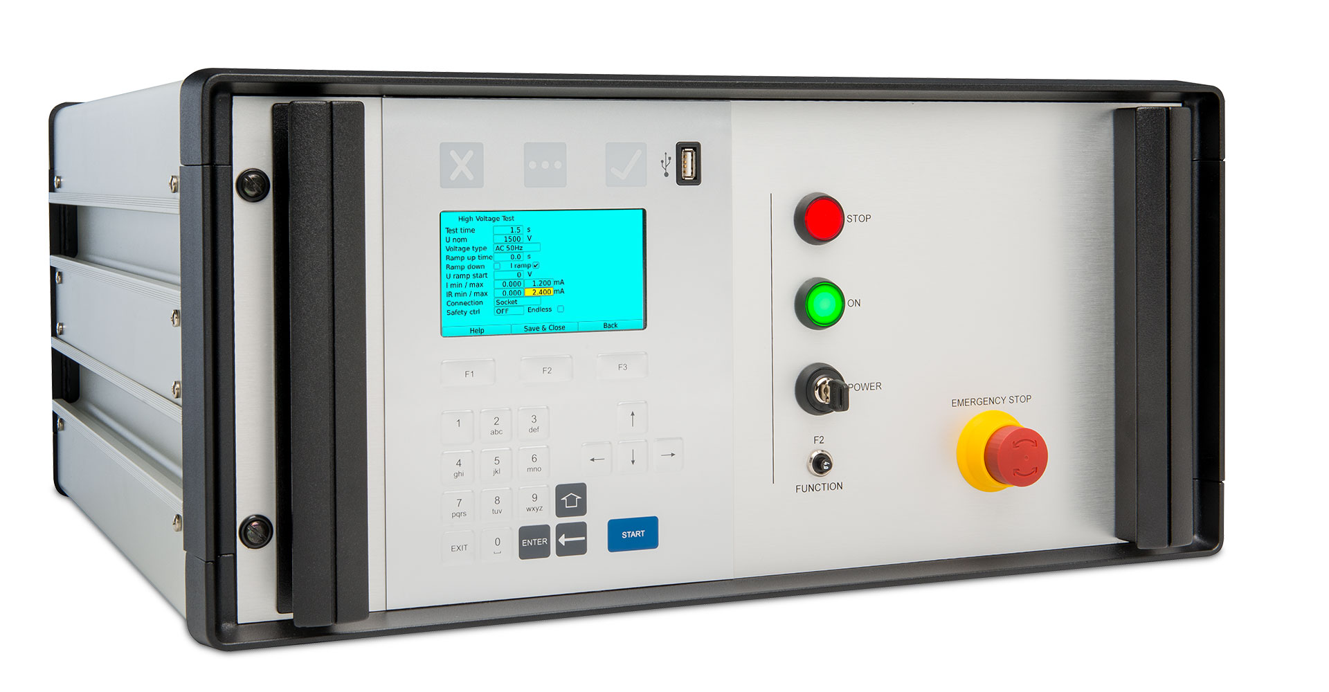 Con corrente di cortocircuito < 3 mA AC / < 12 mA DC, il dispositivo è a corrente di sicurezza limitata (secondo EN 50191) e facilita la realizzazione di una postazione di lavoro sicura; può quindi essere utilizzato anche da personale non qualificato come elettricista. Il generatore di alta tensione completamente elettronico garantisce prove rapide e accurate.
