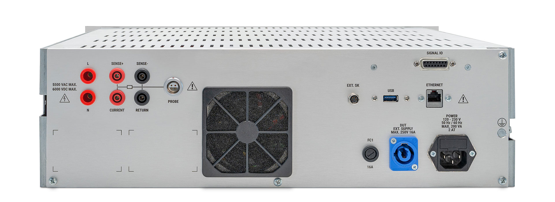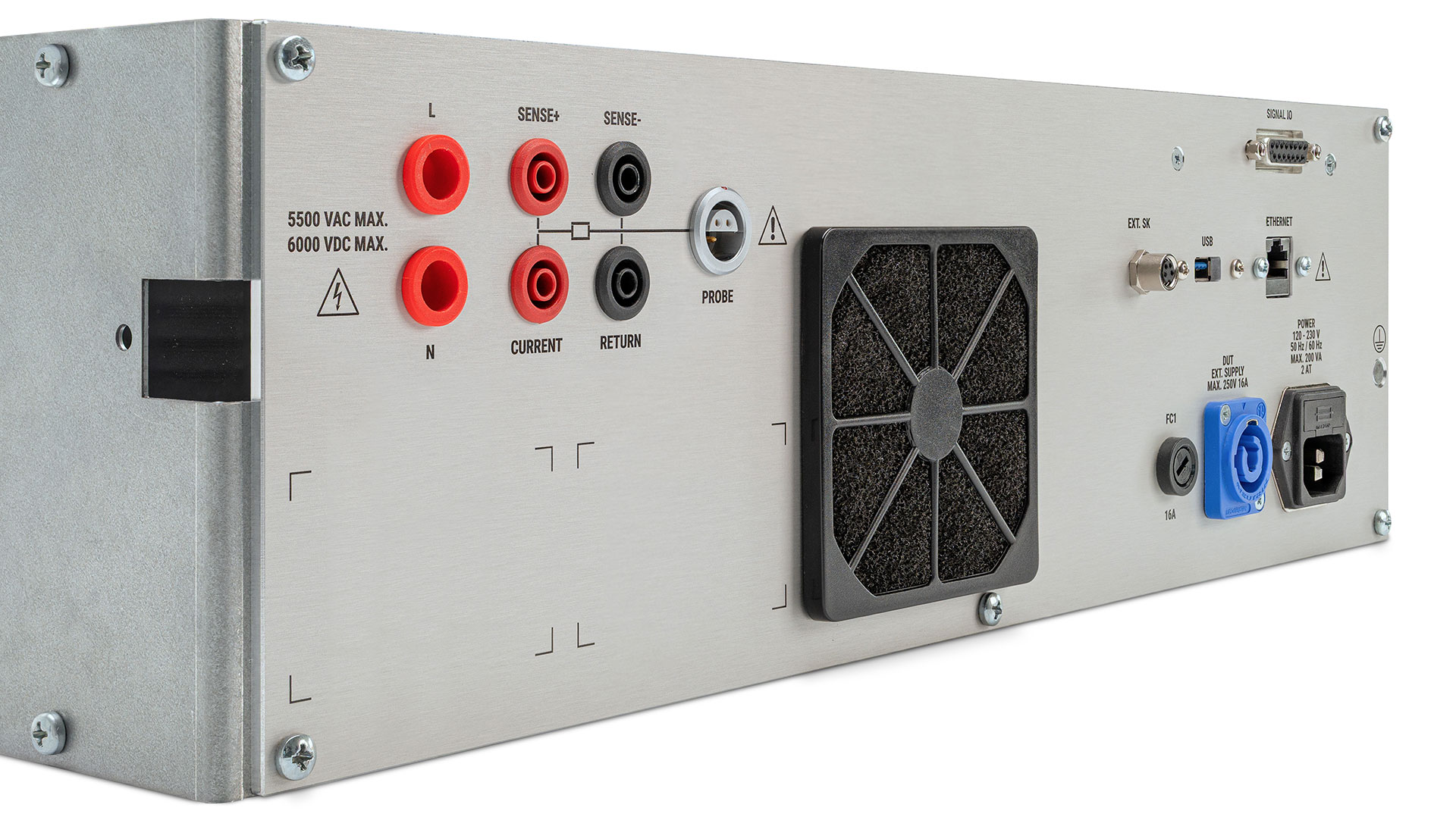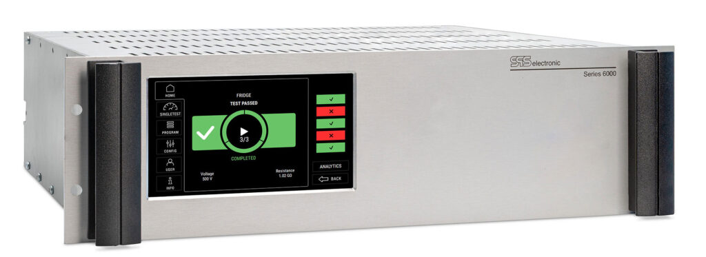 Tutti e tre i dispositivi sono pensati per un’ampia gamma di prove legate alla sicurezza elettrica. Le prove di alta tensione rappresentano un componente centrale dei controlli: consentono test in AC nell’intervallo 100–5.500 V con corrente fino a 20 mA e test in DC nell’intervallo 100–6.000 V.