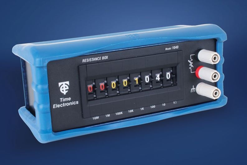 La 1040 è una cassetta resistiva decadica di precisione ad ampio range, progettata per soddisfare le esigenze sia dell’industria sia del settore educativo. Il modello è compatto e robusto, alloggiato in un contenitore metallico resistente con copertura protettiva in gomma rimovibile, caratteristica che lo rende adatto sia all’uso in laboratorio sia in campo. L’eccellente accuratezza, pari a 0,1% a metà scala, è ottenuta grazie all’impiego di resistori a film metallico ad alta stabilità. Il selettore thumbwheel a 8 decadi consente un’impostazione semplice e precisa, con chiara indicazione del valore di resistenza impostato.